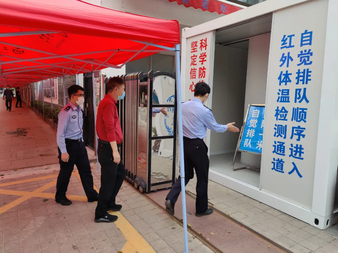 學(xué)校開(kāi)學(xué)前期,福田公安分局加強(qiáng)與區(qū)教育、衛(wèi)健等部門的溝通聯(lián)絡(luò),聯(lián)合學(xué)校建立“協(xié)作聯(lián)動(dòng)、信息互通”的工作機(jī)制,督促學(xué)校主動(dòng)落實(shí)疫情防控責(zé)任,加強(qiáng)校園內(nèi)、外部安保力量,做好人防、物防、技防等防范措施,在上放學(xué)高峰時(shí)段加強(qiáng)門前值守、巡查,在非上學(xué)時(shí)段全面封閉化管理,守好疫情防控的“第一道關(guān)卡”。