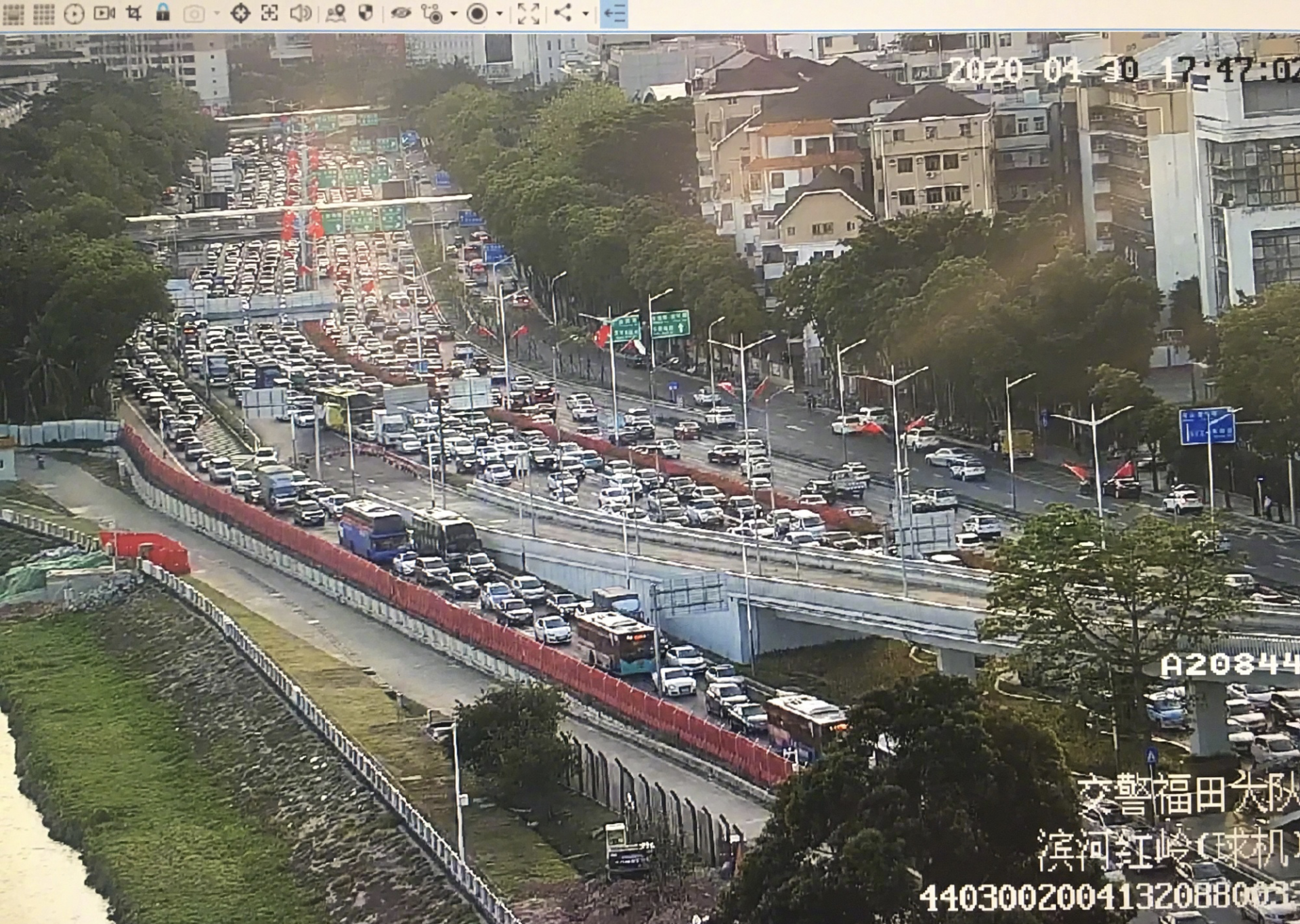 濱河大道是深圳市最先進入晚高峰節(jié)奏的道路,15時30分,濱河大道寶安立交路段西往東方向開始出現(xiàn)車多緩行。車流量慢慢增多,到18時許,濱河大道西往東方向發(fā)生嚴(yán)重交通擁堵,從竹子林立交到鹿丹村路段一片“紅燈”。