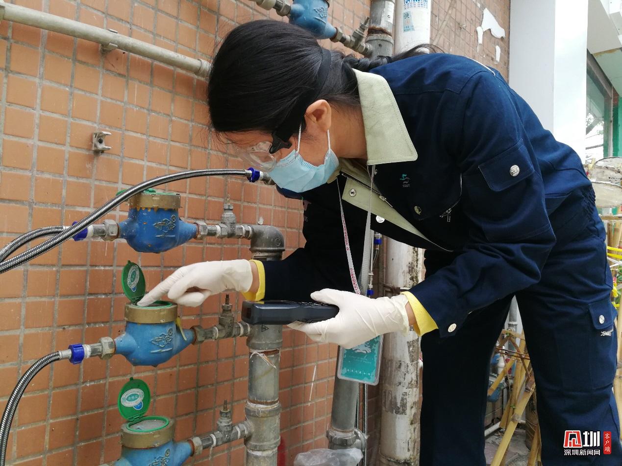 為準(zhǔn)確讀取疫情期間市民的用水信息,南山分公司抄表員陳秋斐,在做好防護工作后,前往小區(qū)讀取水表。