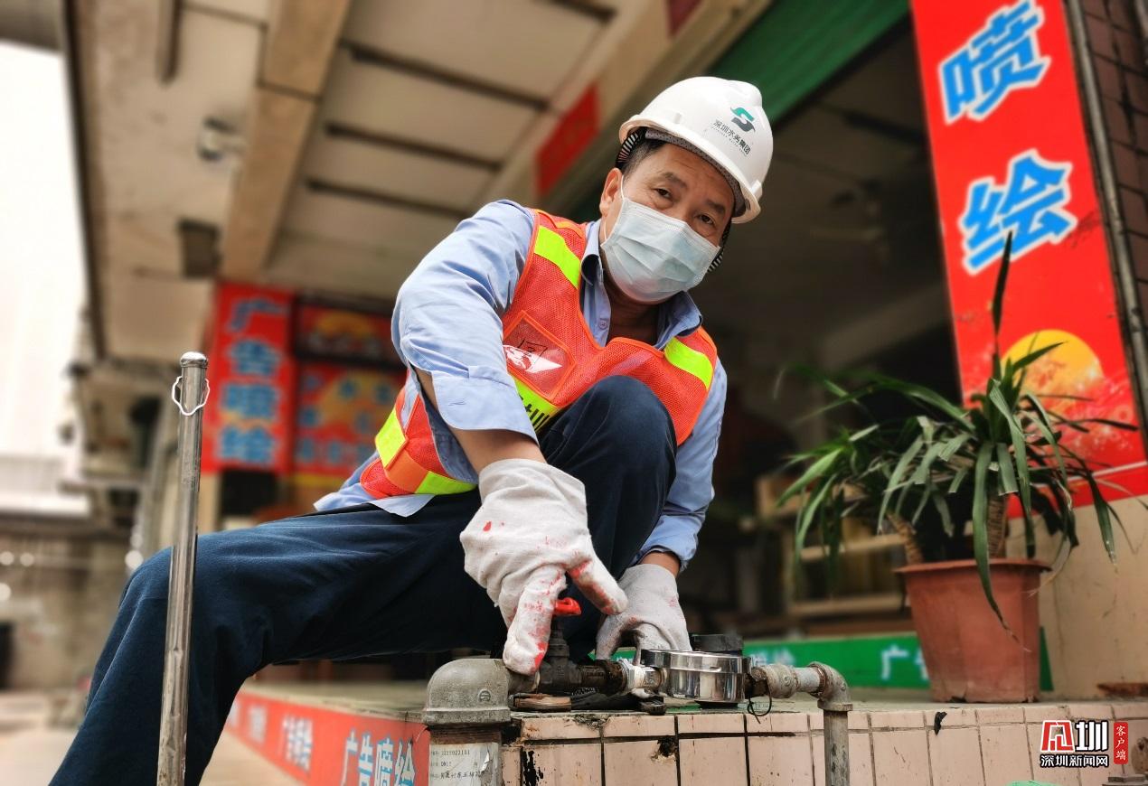 福田分公司福中水務所維修工陳國明,正對水表進行關停,