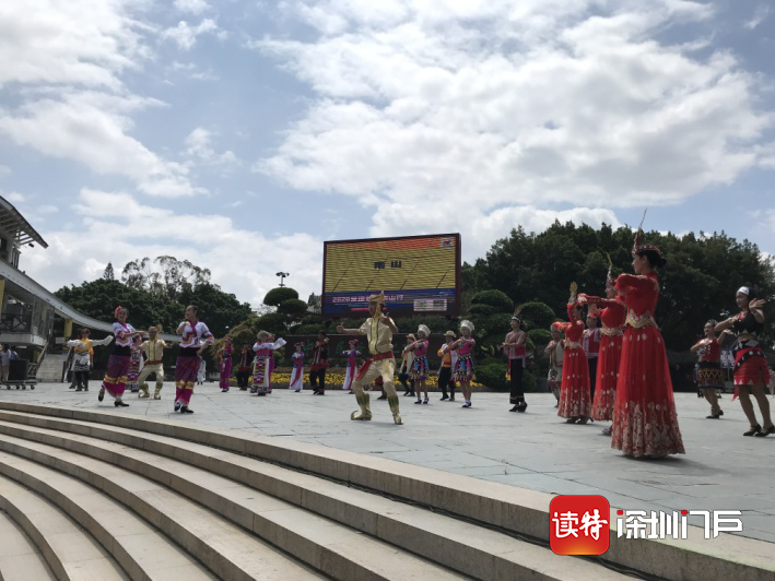 “五十六個(gè)民族親親一家,就像百花園里盛開(kāi)的花……”5月1日上午10點(diǎn)半,錦繡中華民俗村入口的廣場(chǎng)響起了《母親是中華》的歌聲,身著民族服飾的工作人員們載歌載舞迎接游客的到來(lái),表演吸引了游客們駐足觀看、拍照。民俗村工作人員告訴記者,疫情期間暫停的開(kāi)園迎賓表演在假期首日恢復(fù),“五一”期間景區(qū)還推出了“民俗游園會(huì)活動(dòng)”。