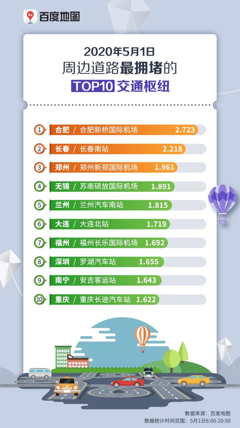百度地圖“5月1日周邊道路最擁堵的TOP10交通樞紐”