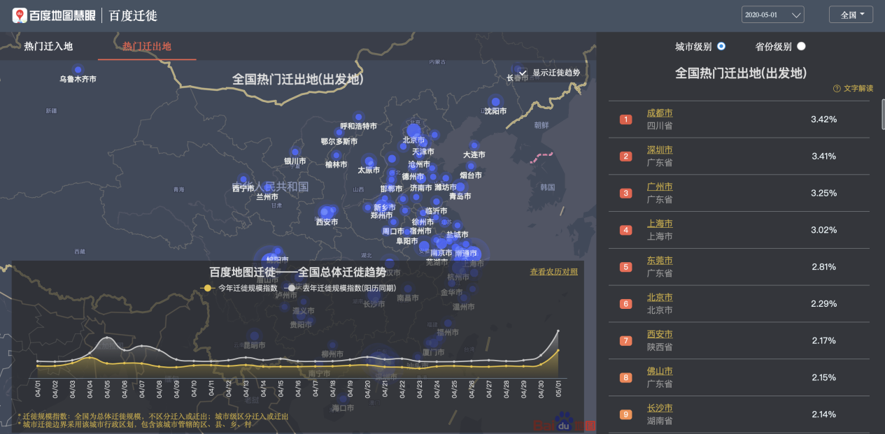 百度地圖遷徙大數(shù)據(jù)平臺(tái)-全國(guó)熱門遷出地
