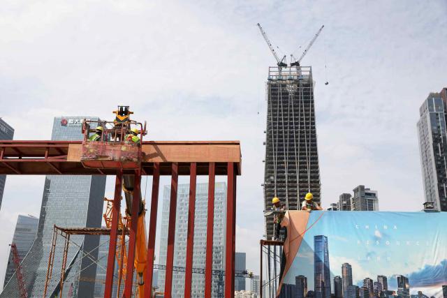 ▲建筑工人在戶外頂著烈日工作。