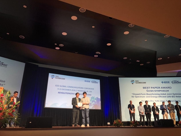 日前,由哈工大(深圳)電子與信息工程學(xué)院2017級碩士研究生李可擔(dān)任第一作者,朱旭教授、蔣宇飛助理教授、鄭福春教授為共同作者,哈工大(深圳)為第一通訊單位完成的論文《三維波束成形輔助的高譜效和能效的無人機(jī)基站網(wǎng)絡(luò)的聯(lián)合優(yōu)化》(“Closed-Form Beamforming Aided Joint Optimization for Spectrum- and Energy-Efficient UAV-BS Networks”)入選通信領(lǐng)域頂級會議Globecom2019 (IEEE Global Communications Conference2019),并獲得最佳論文獎。