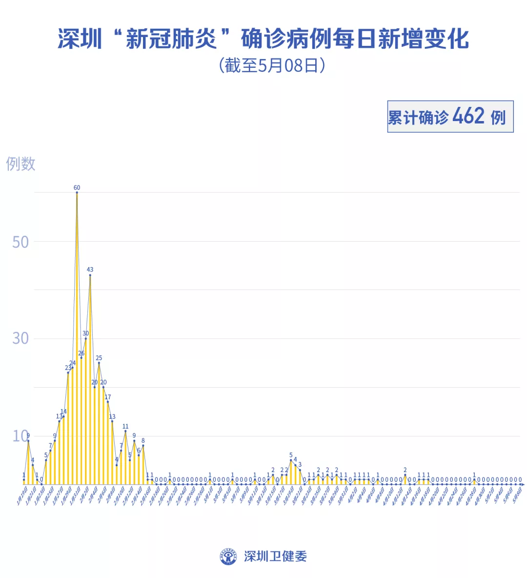 截至5月8日24時,深圳累計報告新冠肺炎病例462例。