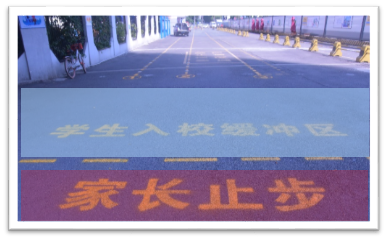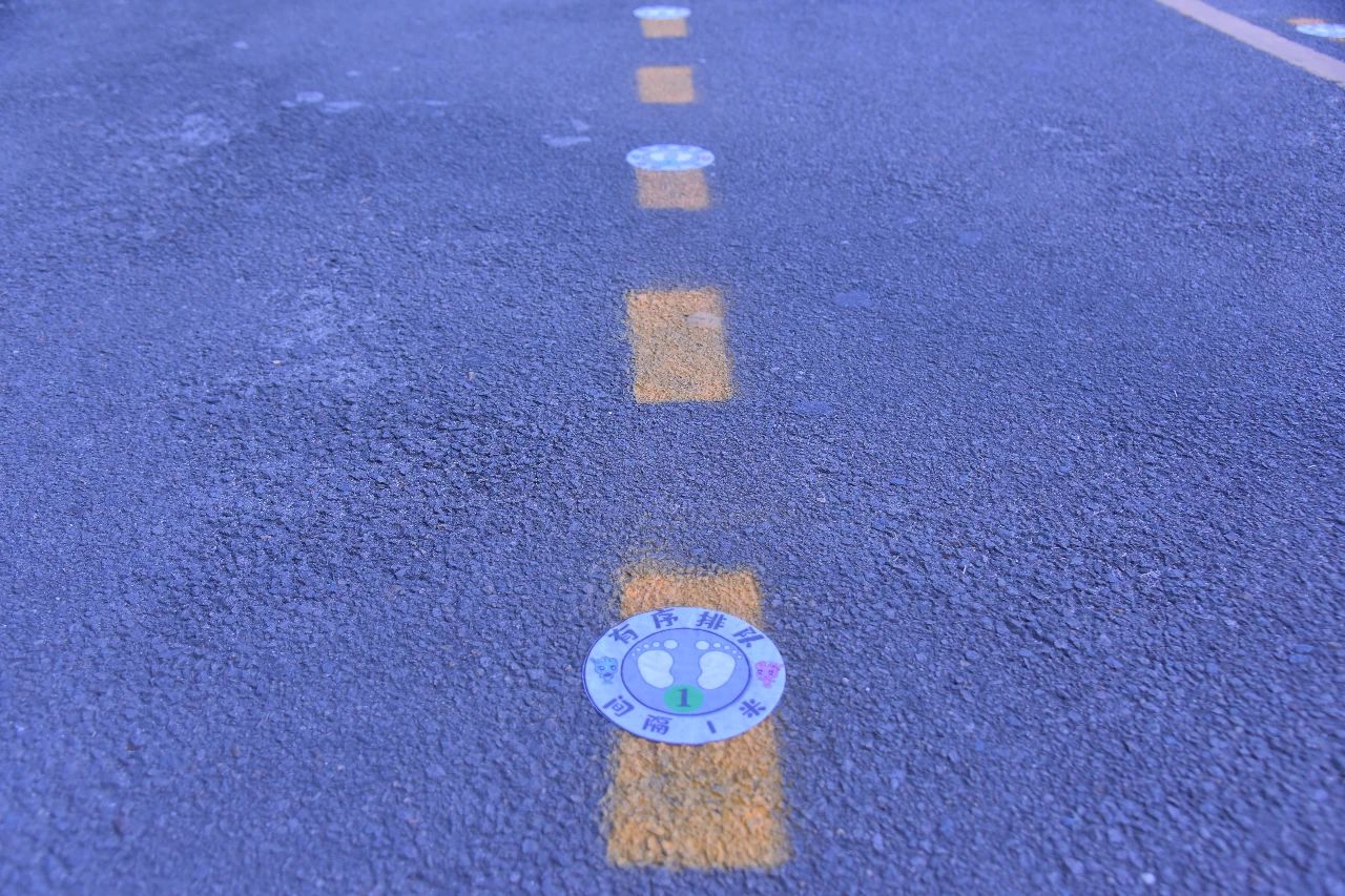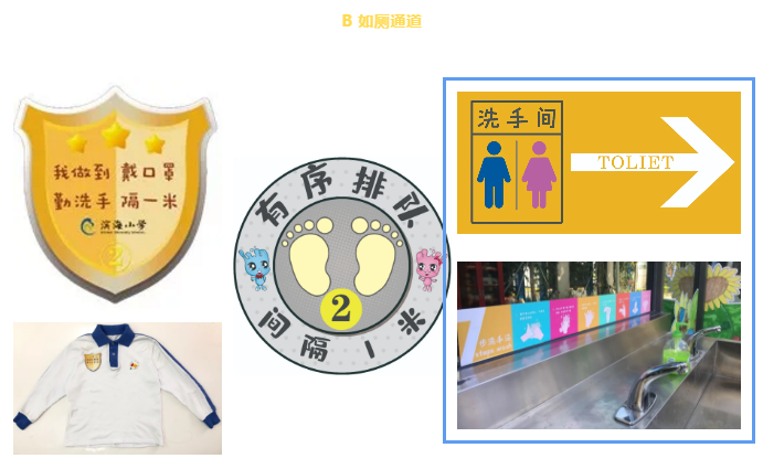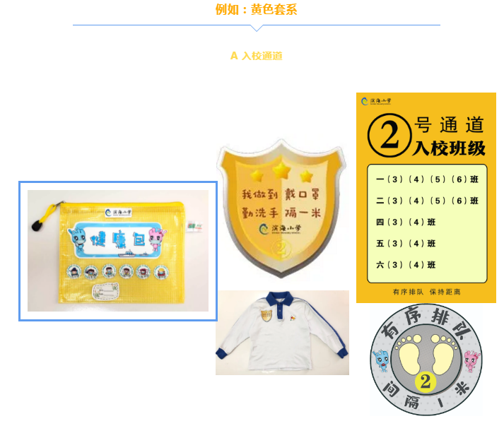 學校將教學區(qū)劃分為“綠黃藍”三區(qū),并精心設(shè)計了帶有濱海元素的“三色”入校通道、三色盾牌、三色貼紙等!