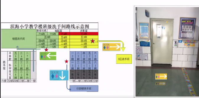 學校在每個樓層,都有彩色的貼條,“不串班不串層,請在屬于自己的色彩區(qū)域內(nèi)活動哦!”