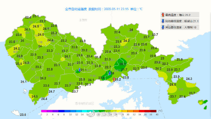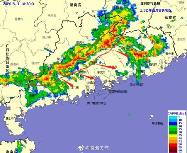 23時32分:【深圳市取消暴雨黃色和大風(fēng)黃色預(yù)警,雷電預(yù)警繼續(xù)生效】強降雨帶已經(jīng)移出我市,市氣象臺于2020年05月11日23時30分在全市取消暴雨黃色、大風(fēng)黃色預(yù)警。全市雷電預(yù)警仍在生效中,未來1-2小時仍有陣雨和零散雷暴,市民仍需注意遠離河道和危險邊坡等。