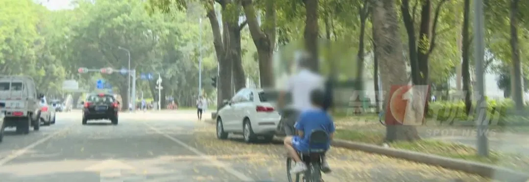 5月12日下午,在南山外國語學??圃沸W與南山外國語學校中間路段,一位老人騎電單車,載著一名小學女生,沿著高新南環(huán)路由西往東方向行駛。