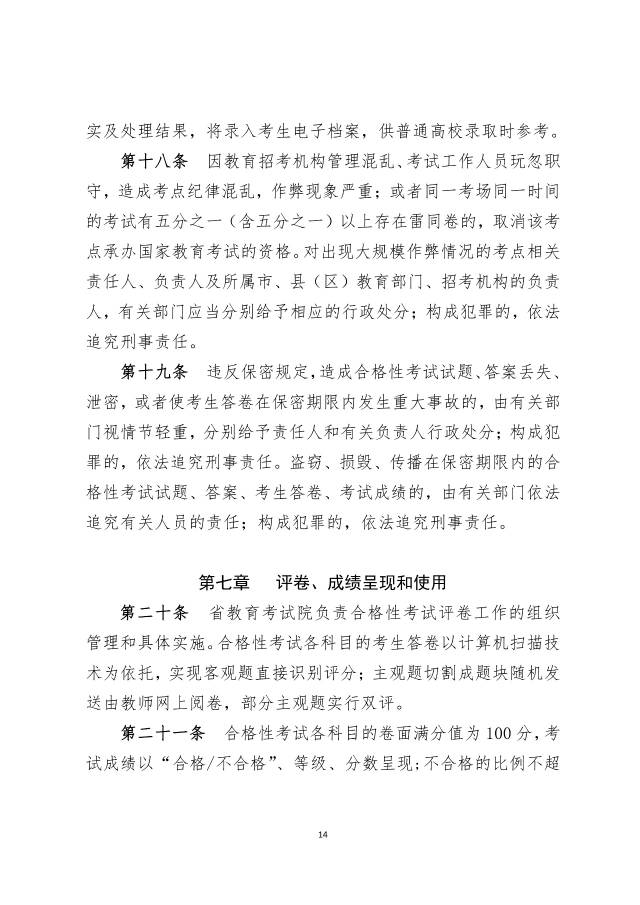 其中,合格性考試覆蓋所有學(xué)習(xí)科目,語(yǔ)文、數(shù)學(xué)、英語(yǔ)三門(mén)科目每年考1次,安排在1月開(kāi)考;思想政治、歷史、地理、物理、化學(xué)、生物學(xué)六門(mén)科目每年考2次,安排在1月和6月開(kāi)考。合格考成績(jī)呈現(xiàn)方式有三種:合格/不合格、等級(jí)、分?jǐn)?shù)??荚嚦煽?jī)一考兩用,既作為學(xué)生畢業(yè)的依據(jù),也作為春季高考招生的依據(jù)之一。
