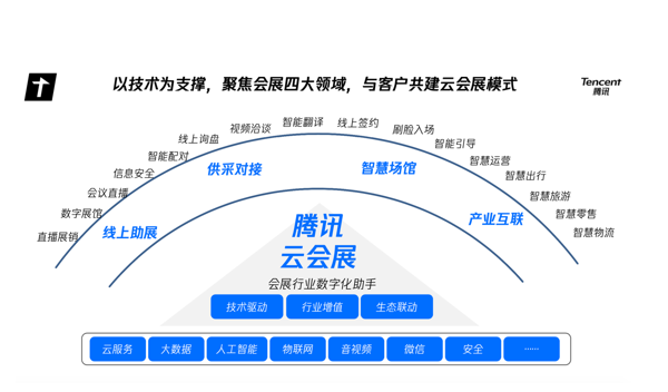 伴隨著云計(jì)算、5G、AI、大數(shù)據(jù)等技術(shù)的成熟,騰訊已經(jīng)成為多個(gè)大型會(huì)展項(xiàng)目提供產(chǎn)品和技術(shù)服務(wù),不斷實(shí)踐和探索線上線下融合的產(chǎn)品技術(shù)及綜合解決方案。騰訊云會(huì)展打造的有別于實(shí)體觀展模式的新思路和新玩法,包括線上展覽、智慧展會(huì)、云展覽等形式,也正為各級政府和企業(yè)激活云上經(jīng)濟(jì)注入新動(dòng)能。