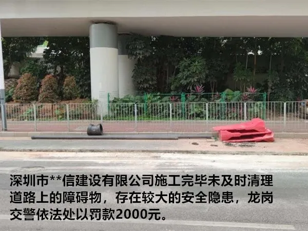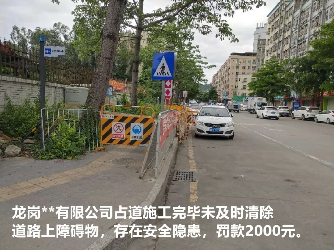 對該施工單位在橫坪連接線路段占道施工導(dǎo)致人行道不連貫、機非沖突,存在較大交通安全隱患的行為,龍崗交警依法處罰10000元并責(zé)令立即整改。