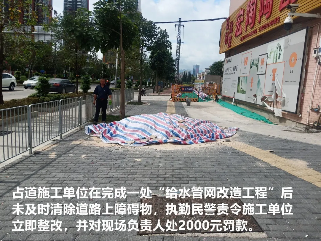 龍崗**有限公司橫崗分公司擅自在高峰期占用道路施工,執(zhí)勤民警責(zé)令立即整改、撤離現(xiàn)場。