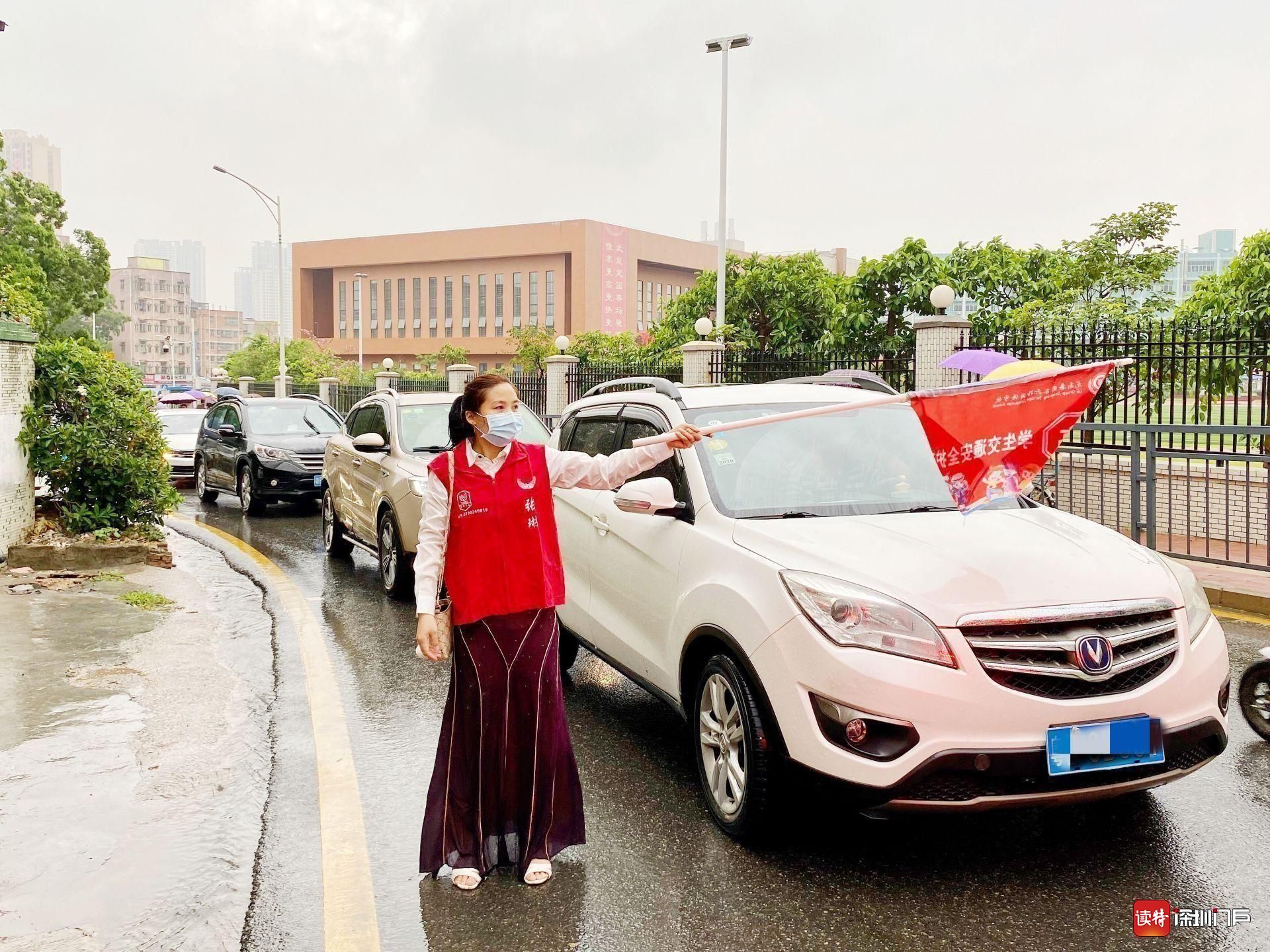 龍崗二職開學(xué)第一天,傾盆暴雨阻擋不住同學(xué)們開學(xué)的笑臉。校長、轄區(qū)民警、教師黨員志愿者早早在校門口迎接同學(xué)們回“家”。這是闊別三月的重逢,少年歸來依舊春風(fēng)滿面。