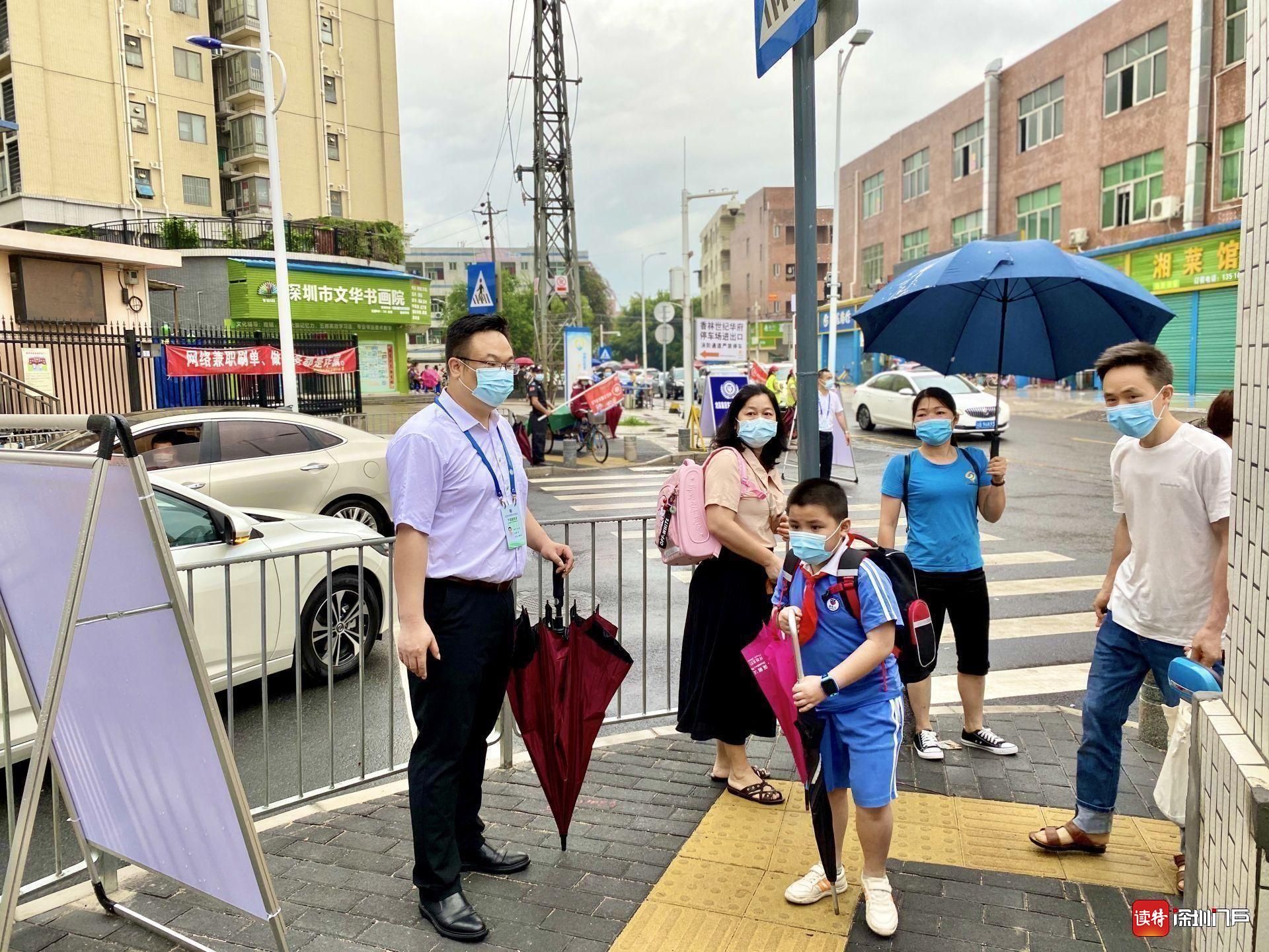 花城小學(xué):點頭問好,微笑傳情,因為有愛,相隔一米。老師們站在校門口歡迎“小花”全面歸來?。ㄗx特記者李麗)