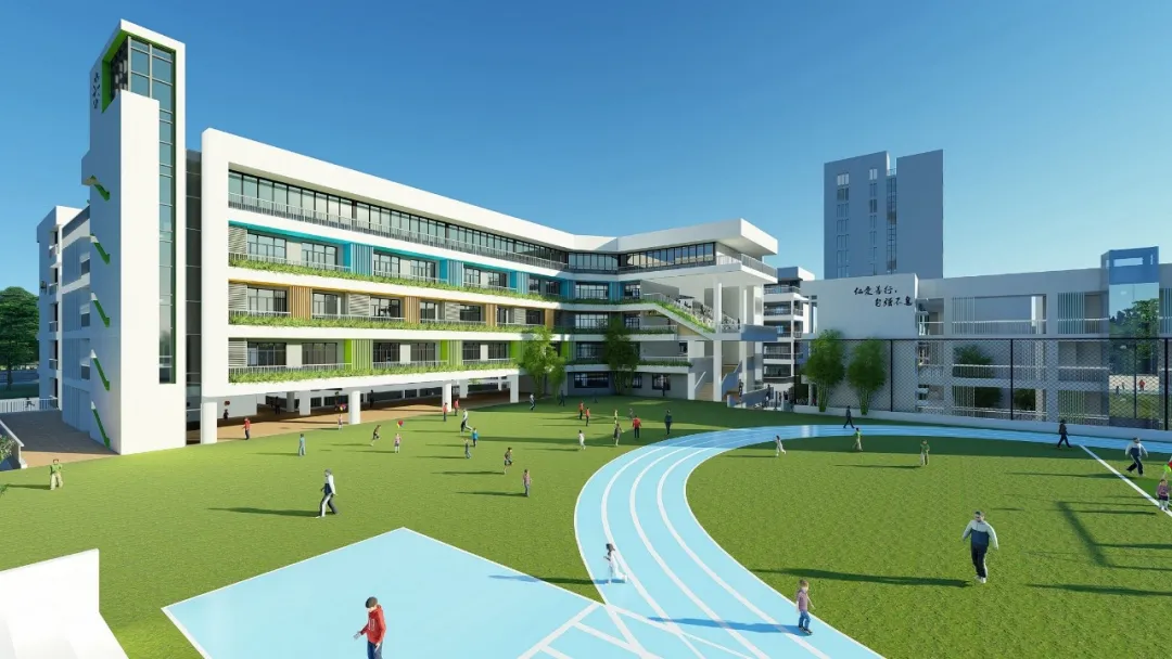 最新進展:教學樓及宿舍樓室內裝修完成50%,外墻涂料完成95%;室外景觀園林、跑道及球場完成80%。預計今年6月底完工并交付使用。