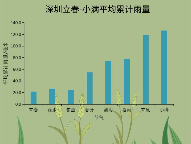 小滿節(jié)氣,除了氣溫不斷地攀升,雨水也逐漸增多。伴隨著南海夏季風(fēng)的爆發(fā),所謂小滿大滿,江河水滿,意思是小滿節(jié)氣強(qiáng)降水過程頻繁,間隔時(shí)間短,經(jīng)常一波接一波。進(jìn)入小滿節(jié)氣后,深圳也進(jìn)入了一年一度的“龍舟水”時(shí)期。此時(shí)南方的暖濕氣流活躍,與北方南下的冷空氣交匯,往往會(huì)出現(xiàn)持續(xù)大范圍的強(qiáng)降水。氣象統(tǒng)計(jì)數(shù)據(jù)顯示,小滿節(jié)氣后15天深圳平均累計(jì)雨量為126.9毫米,比之前的立夏時(shí)節(jié)降水更加豐沛。