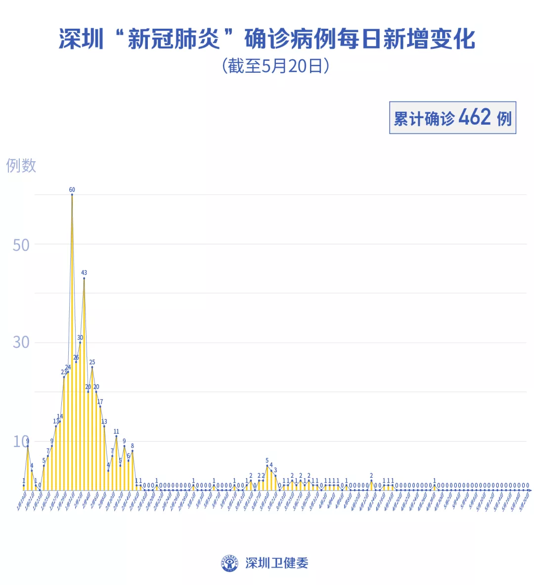 截至5月20日24時,深圳累計(jì)報(bào)告新冠肺炎病例462例。