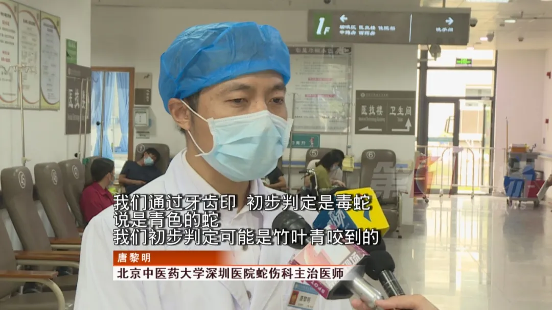 北京中醫(yī)藥大學深圳醫(yī)院蛇傷科主治醫(yī)師 唐黎明:一般被蛇咬之后,以腫脹為主,就是火毒型的,咬到的地方腫的很厲害,被咬后首先要近心端結(jié)扎,如果是毒蛇咬傷的話,近心端結(jié)扎,然后盡量不要走動跑動,立刻停下來,然后立馬打120或用車送到醫(yī)院救治。
