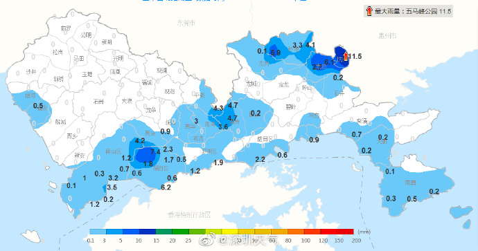 11時(shí)39分:目前龍崗正在下雨,部分地區(qū)半小時(shí)雨量達(dá)12-13mm,龍崗的朋友們帶傘了嗎?中午下班放學(xué)路上要注意安全。