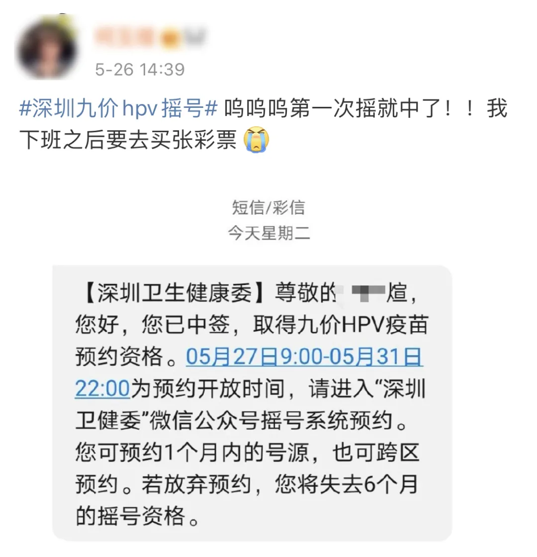 “嗚嗚嗚……簡直不敢相信我的眼睛,前段時(shí)間連口罩都抽不中的我,竟然抽中了九價(jià)HPV疫苗”。