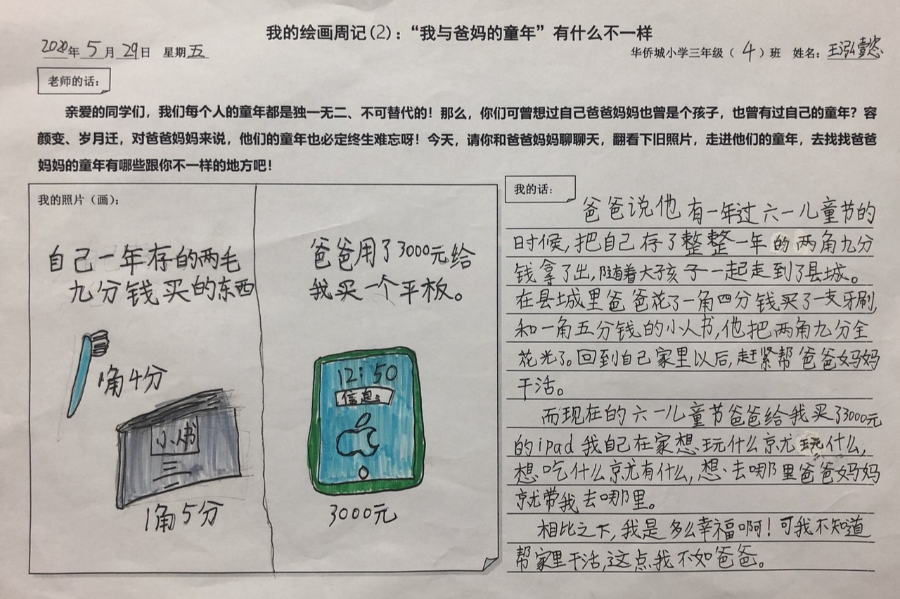 ▲媽媽說:“那會兒只有過六一兒童節(jié),才可以吃到大白兔奶糖。甜蜜蜜的味道,渴望了許久,吃了糖,糖紙都舍不得扔,還悄悄珍藏起來?!眿寢屵€說:“那時,沒有漂亮的公主裙,只有純白的棉布裙,但還是特別的開心!”雖然我和媽媽在六一得到的禮物不同,但過節(jié)的心情都是激動又難忘!