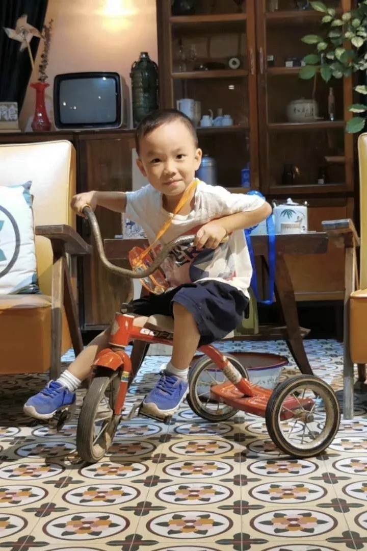 ▲四十年后,我在復(fù)古舊物店里也騎上了。