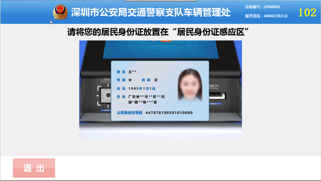 將身份證放置在讀取區(qū)內進行身份證信息讀??;
