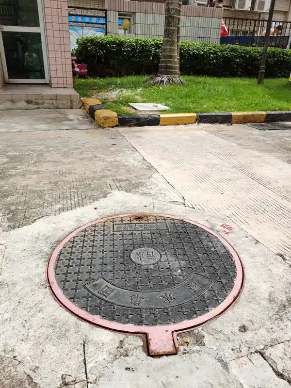 ▲從地上痕跡可見,散發(fā)臭氣的污水井連著隔壁小區(qū)。