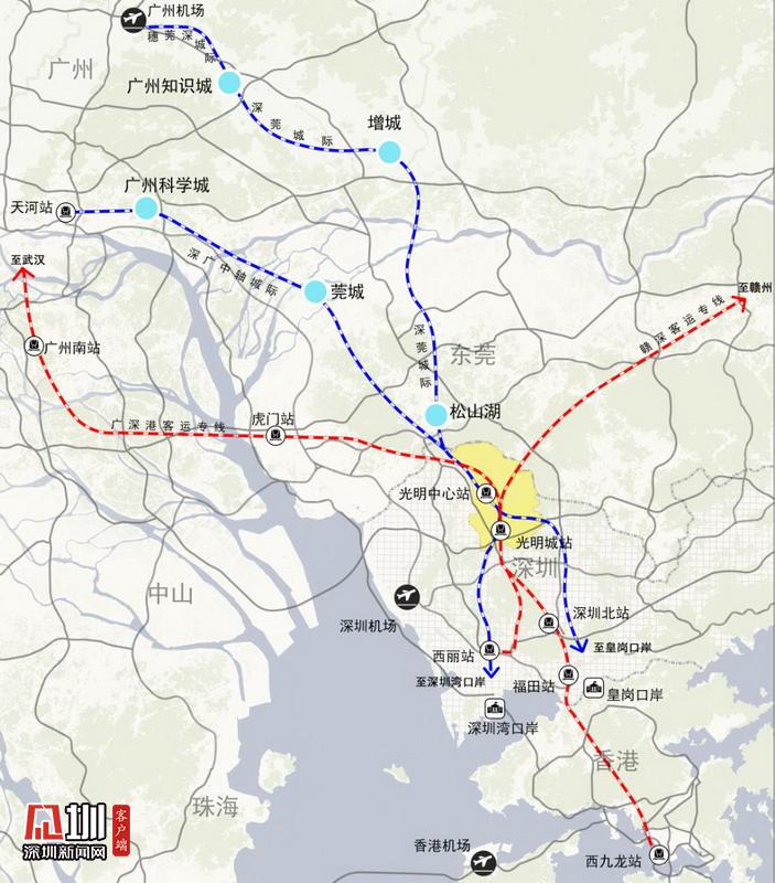 光明科學(xué)城區(qū)域交通示意圖。
