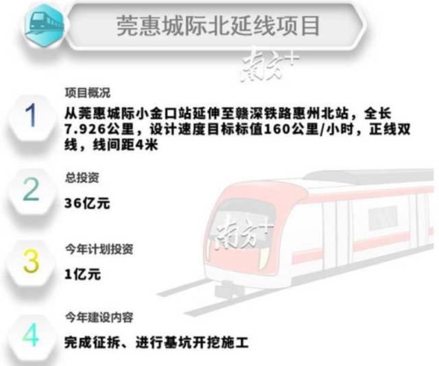 南方日?qǐng)?bào)、南方+記者留意到,前不久,惠州市發(fā)改局在《惠州市2020年重點(diǎn)建設(shè)項(xiàng)目計(jì)劃》中,已經(jīng)把莞惠城際北延線項(xiàng)目列為今年新開工項(xiàng)目。該線路設(shè)計(jì)速度目標(biāo)標(biāo)值160公里/小時(shí),正線雙線,線間距4米。