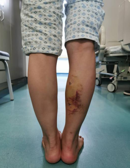 術后,楊柳(化名)的雙側小腿恢復等長,她的右腳腳跟終于可以著地站立。