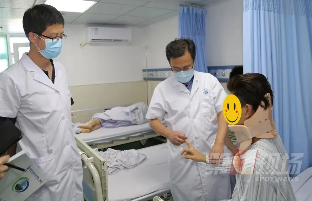 小威(化名):我當(dāng)時(shí)在玩手機(jī),感覺脖子酸痛酸痛的,脖子后面突然刺痛了一下,我以為是抽筋。我以為睡醒就好,后來脖子越來越痛,身體完全動不了。