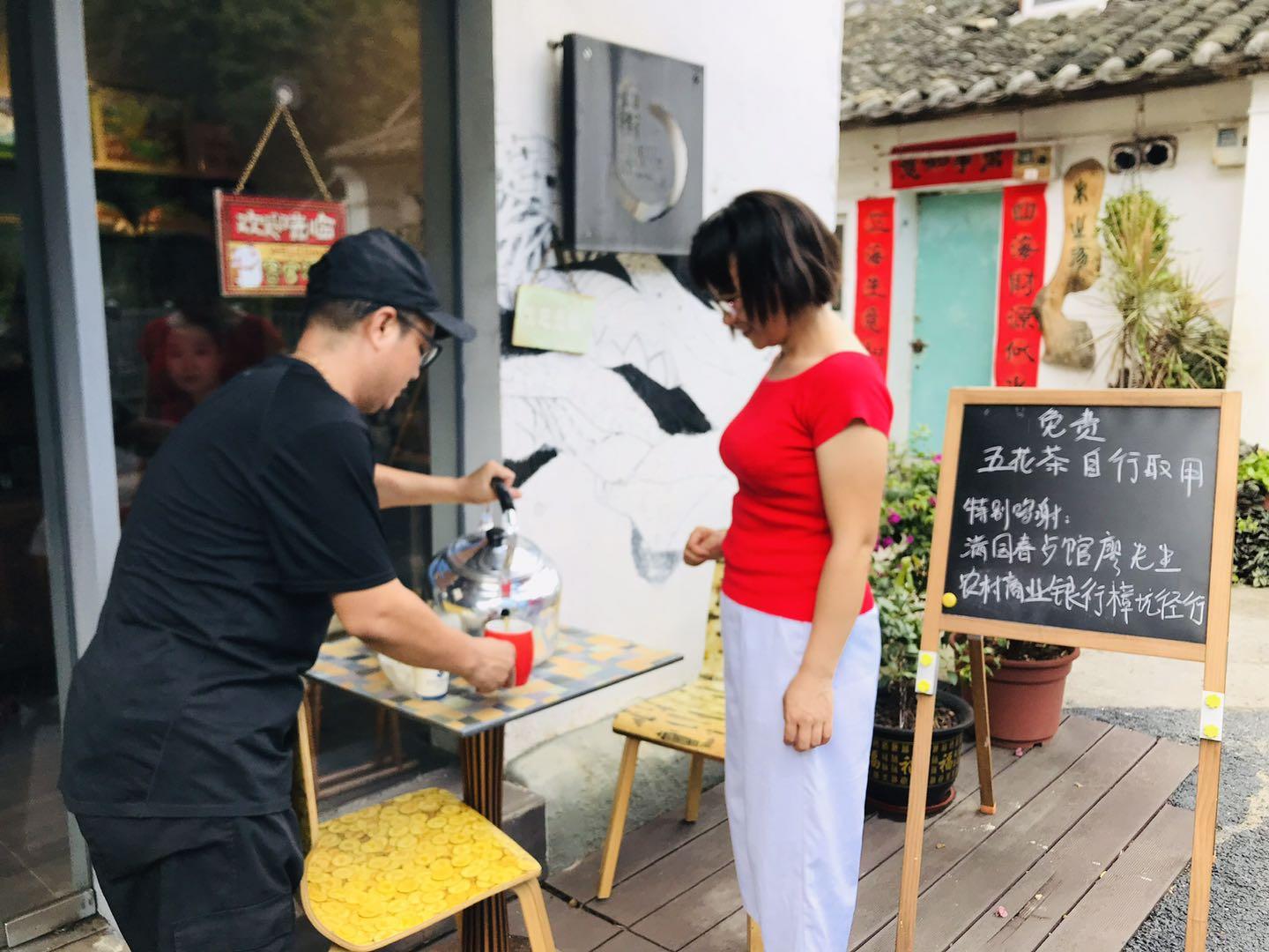 在這次愛心援助之后,上圍藝術(shù)村更是掀起了一股“愛心接力”的浪潮,村民和藝術(shù)家們積極地接過接力棒,紛紛響應(yīng)起來。國家級非遺傳承人張和玉醫(yī)生,為大家按照時節(jié)、氣候開了更專業(yè)的涼茶方子;滿園春農(nóng)莊貢獻(xiàn)了五花茶材料和相關(guān)用品;駐村藝術(shù)家雍明支持制作了“關(guān)于涼茶的愛心拉力”公示牌貼在了涼茶提供處……