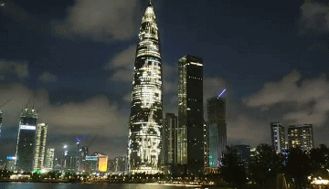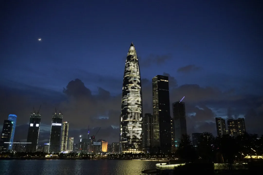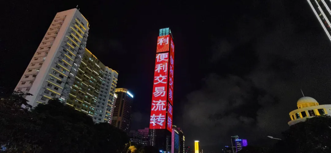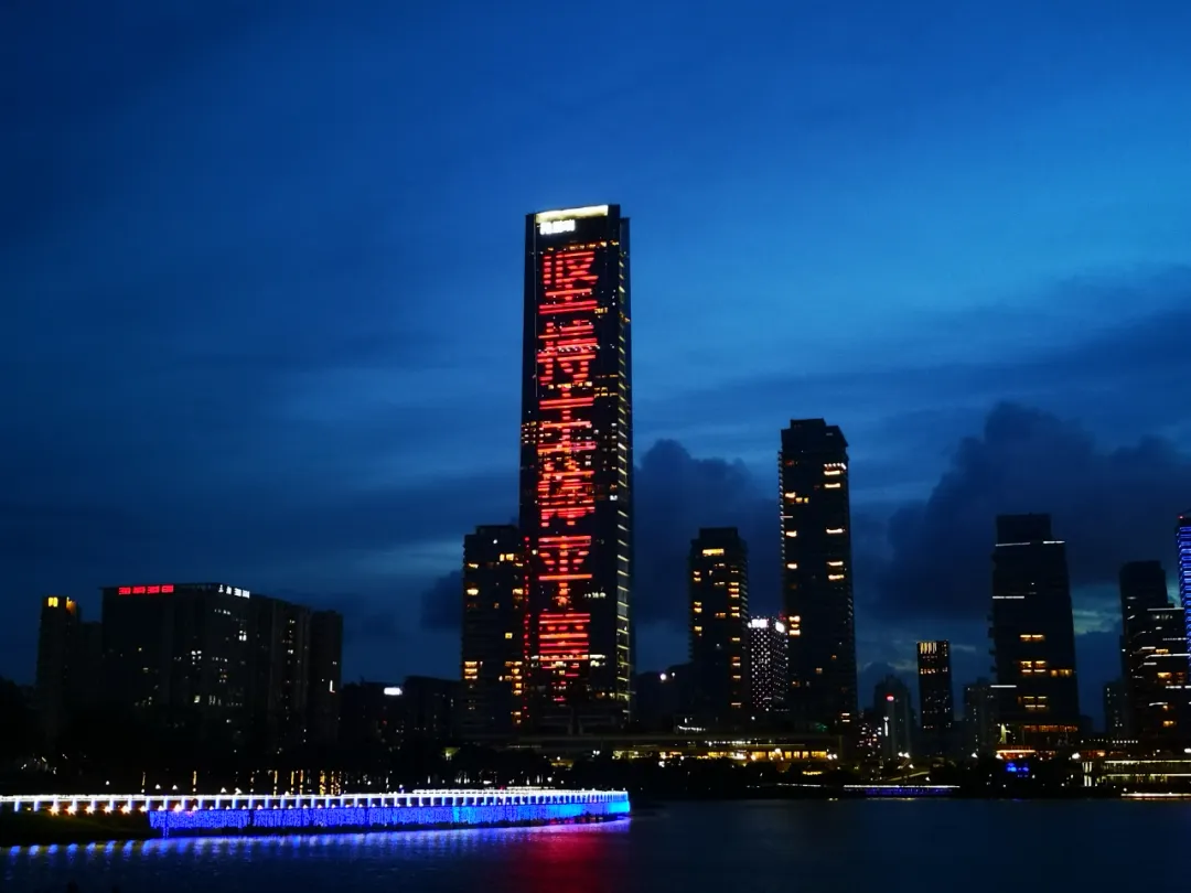 平安國(guó)際金融中心、京基100大廈、深圳漢國(guó)城市商業(yè)中心、深圳灣1號(hào)、中國(guó)華潤(rùn)大廈五座城市地標(biāo)的外立面上,同時(shí)亮起了絢麗的燈光。