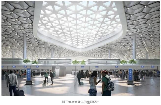 地面公園、主入口廣場(chǎng)以及綠化屋頂以開(kāi)放、友好的姿態(tài)展現(xiàn)生態(tài)環(huán)保表達(dá)建筑的公共屬性。主入口處外立面向上,展露出內(nèi)部的玻璃幕墻,以開(kāi)放的姿態(tài)迎接旅客的到來(lái)。引入“垂直疊放”設(shè)計(jì)策略,高效組織口岸出入境及公共交通換乘,整合聯(lián)系城市綠軸與福田口岸無(wú)縫連接,致力在區(qū)域核心打造一個(gè)開(kāi)放、綠色與城市緊密聯(lián)系的公共空間。