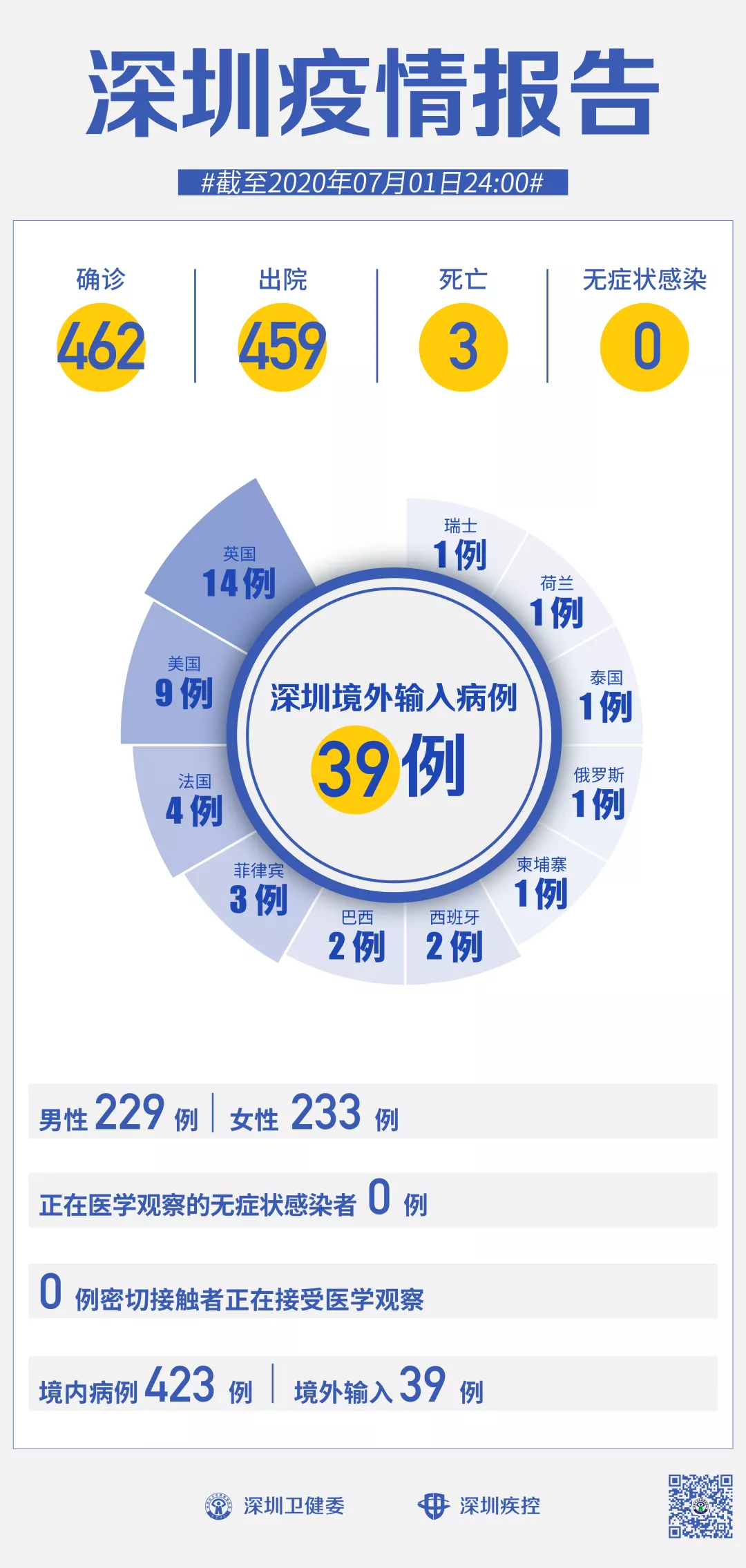 截至7月1日24時(shí),深圳累計(jì)報(bào)告新冠肺炎病例462例。