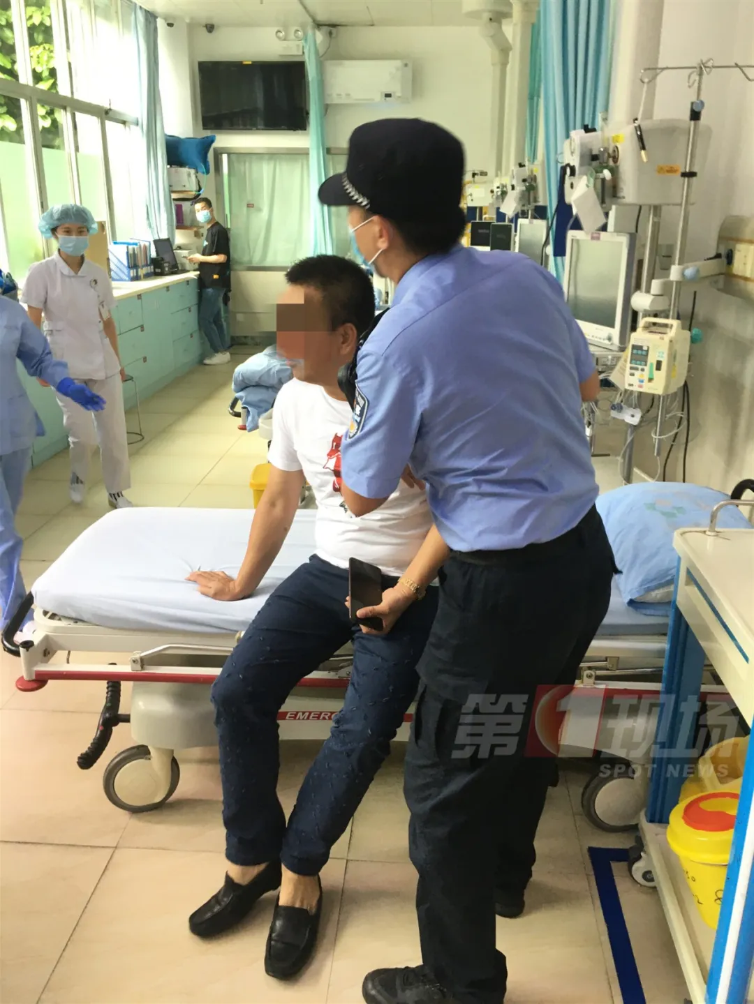 經(jīng)醫(yī)生搶救確認(rèn)情況穩(wěn)定,司機(jī)的家屬也到達(dá)醫(yī)院后,交警才放心離開。