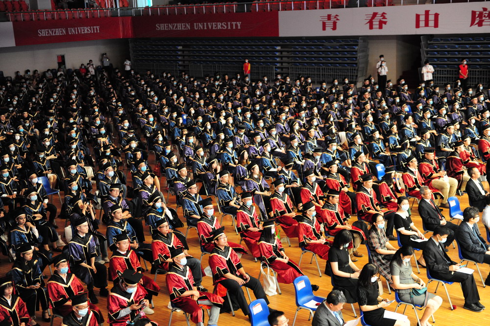 上午9時(shí),畢業(yè)典禮在莊嚴(yán)的國歌聲中拉開了帷幕。據(jù)介紹,2020年深圳大學(xué)畢業(yè)研究生數(shù)量創(chuàng)歷史新高,達(dá)到2334名,包括44位博士學(xué)位獲得者,2290位碩士學(xué)位獲得者。其中,郭奎奎等20人獲得廣東省優(yōu)秀學(xué)生稱號(hào),李豪道等140人榮獲國家獎(jiǎng)學(xué)金,曾吉申等64人榮獲鵬城獎(jiǎng)學(xué)金、騰訊創(chuàng)新獎(jiǎng)學(xué)金。