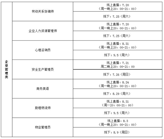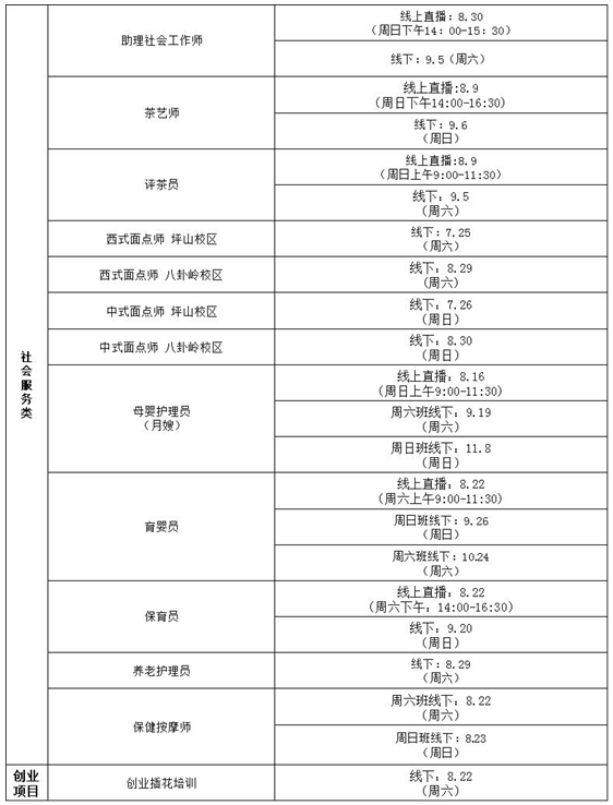 職業(yè)技能培訓(xùn)課程開課時(shí)間如下: