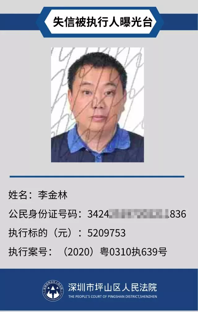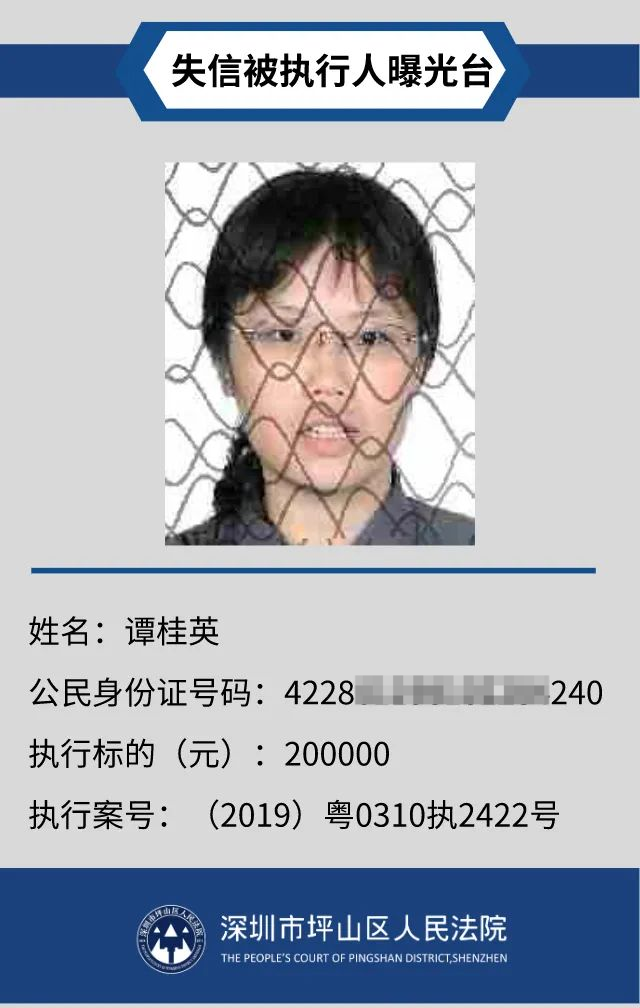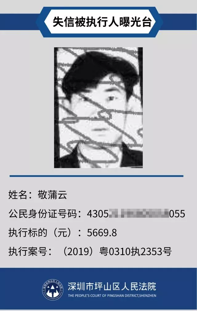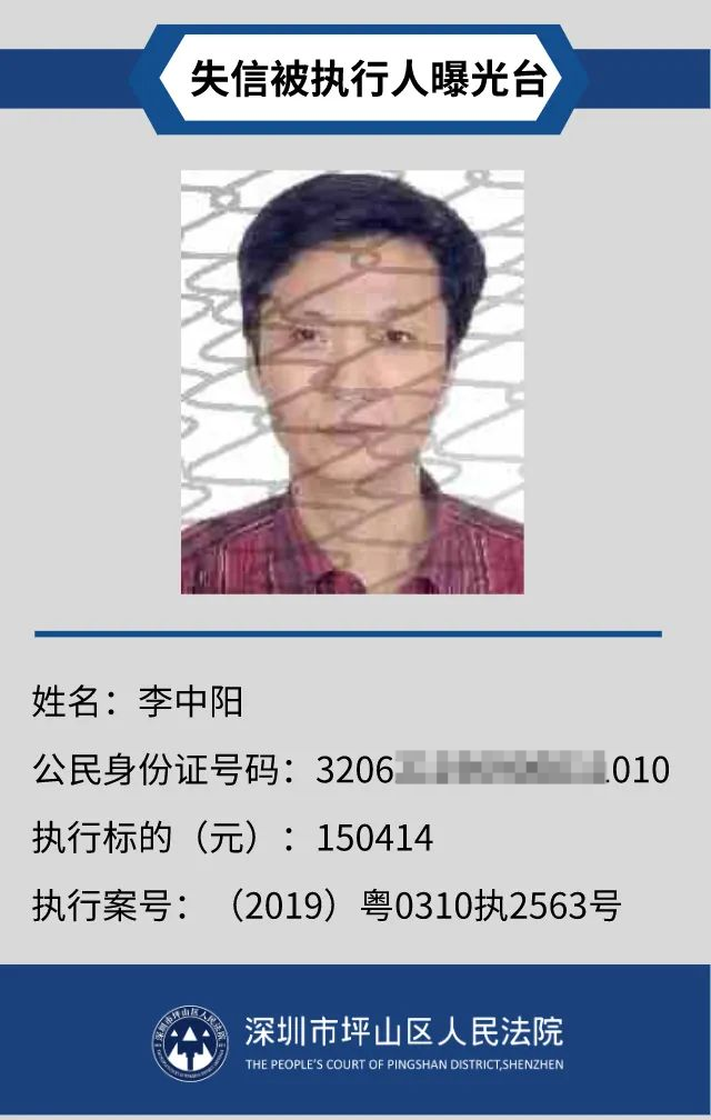 為督促被執(zhí)行人自覺履行生效法律文書確定的義務,推進社會誠信體系建設,深圳市坪山區(qū)人民法院根據《中華人民共和國民事訴訟法》第二百五十五條、《最高人民法院公布失信被執(zhí)行人名單信息若干規(guī)定》第一條和第七條之規(guī)定,現(xiàn)對31名失信被執(zhí)行人予以公布。名單信息根據案件結案情況及時更新,歡迎舉報失信被執(zhí)行人行蹤及財產線索,相關信息核實請聯(lián)系深圳市坪山區(qū)人民法院執(zhí)行局。