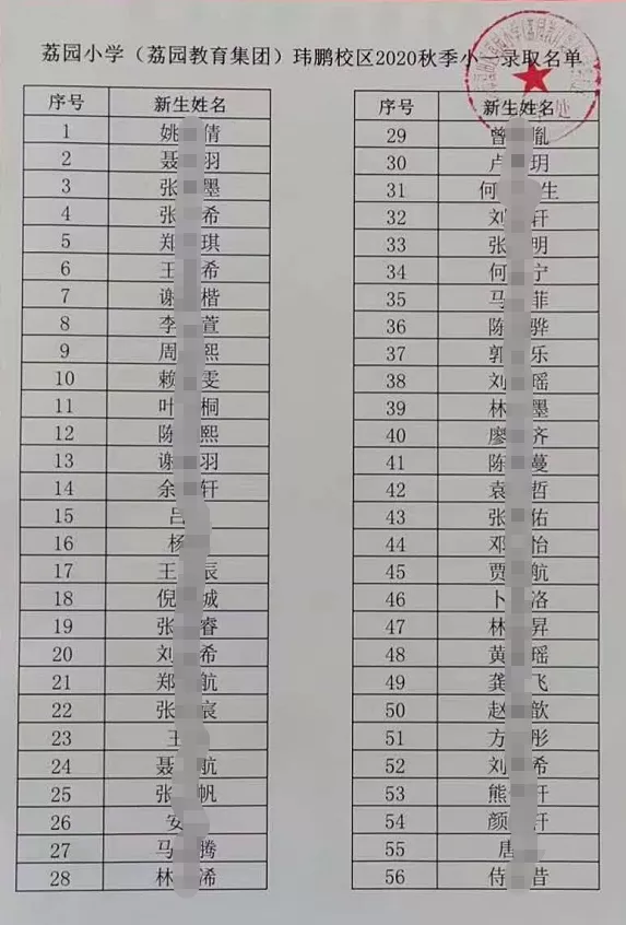 2020年福田區(qū)公辦小一新生錄取名 ...