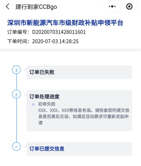 如客戶初審、終審失敗,重新進(jìn)入“深圳市新能源汽車(chē)市級(jí)財(cái)政補(bǔ)貼申領(lǐng)平臺(tái)”發(fā)起申請(qǐng)即可。