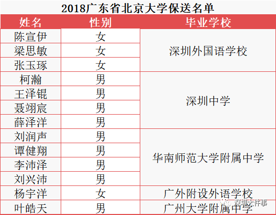 2018年廣東省清北保送共25人,深圳14人,深外占8人;
