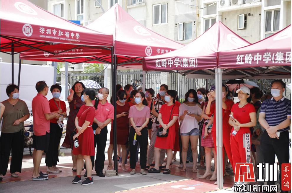 10點(diǎn)40分,穿著紅色衣服等待考生的家長(zhǎng)們。