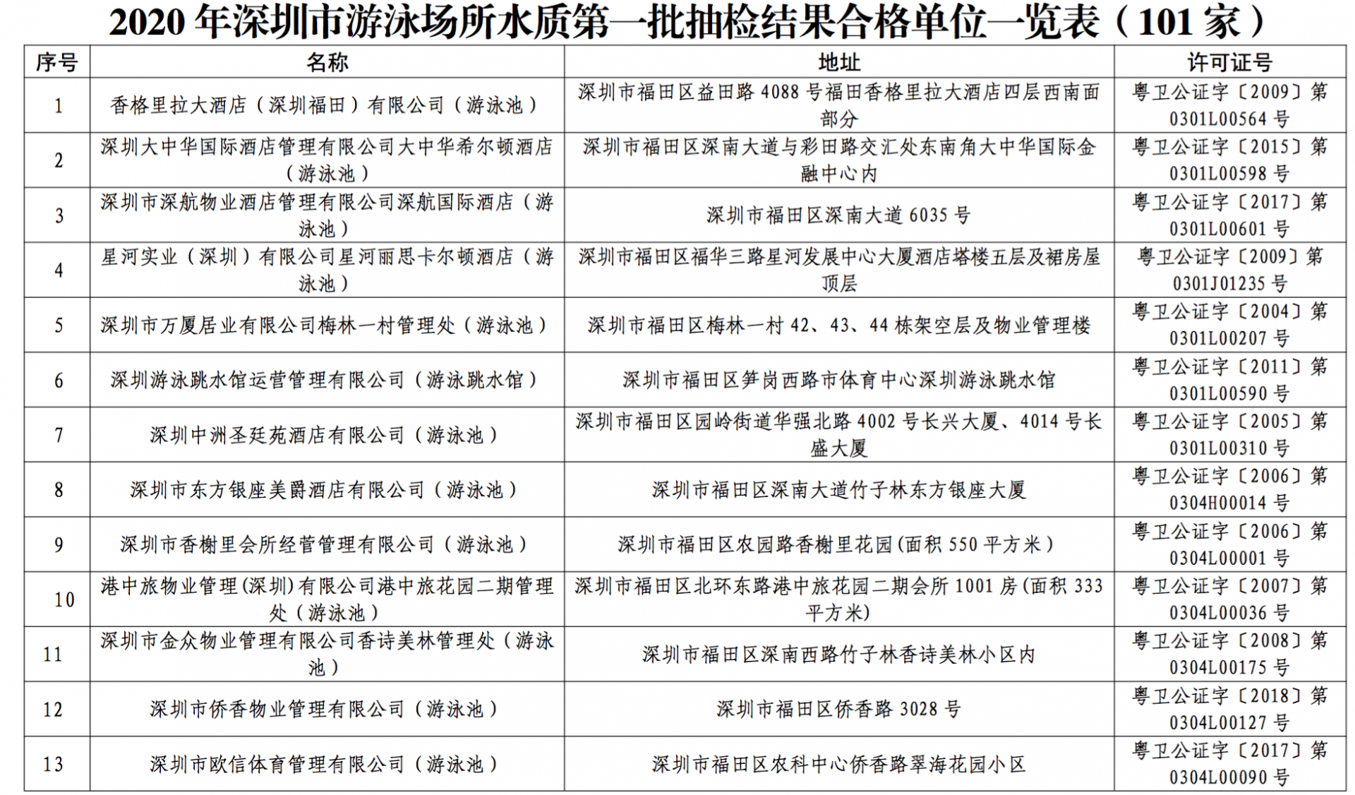 原標(biāo)題 游泳去?深圳第一批游泳場所水質(zhì)抽檢結(jié)果:這2家不合格