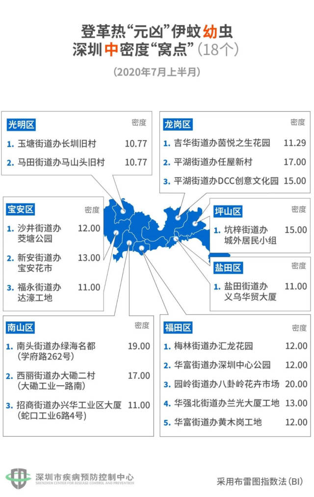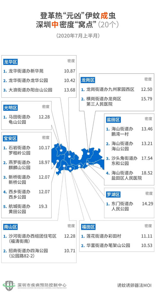 7月24日,深圳市疾控中心發(fā)布了7月上半月(7月1日-15日)的全市伊蚊密度監(jiān)測結(jié)果。
