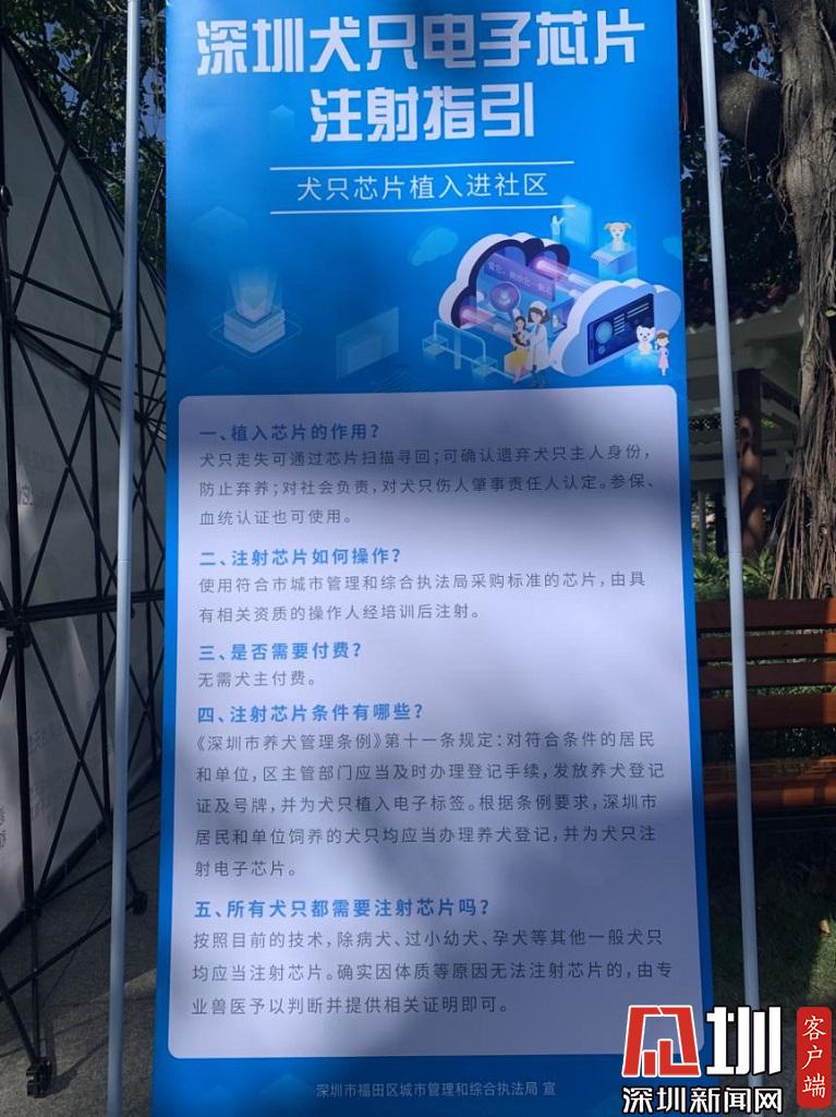 見(jiàn)圳客戶端·深圳新聞網(wǎng)2020年7月26日訊(記者 戰(zhàn)旗)7月26日上午,由深圳市城市管理和綜合執(zhí)法局主辦,福田區(qū)城管和綜合執(zhí)法局承辦的全市首場(chǎng)“文明養(yǎng)犬·芯連心”犬只芯片植入進(jìn)社區(qū)活動(dòng)在福田區(qū)景蜜社區(qū)公園開(kāi)展。記者現(xiàn)場(chǎng)獲悉,2020年年底前,深圳將實(shí)現(xiàn)犬只芯片管理全覆蓋,目前,全市各區(qū)都在逐步推進(jìn)犬只芯片植入工作,福田區(qū)、龍崗區(qū)、龍華區(qū)、羅湖區(qū)、大鵬新區(qū)已與100家寵物醫(yī)院正式簽訂了《犬只芯片植入委托服務(wù)》。