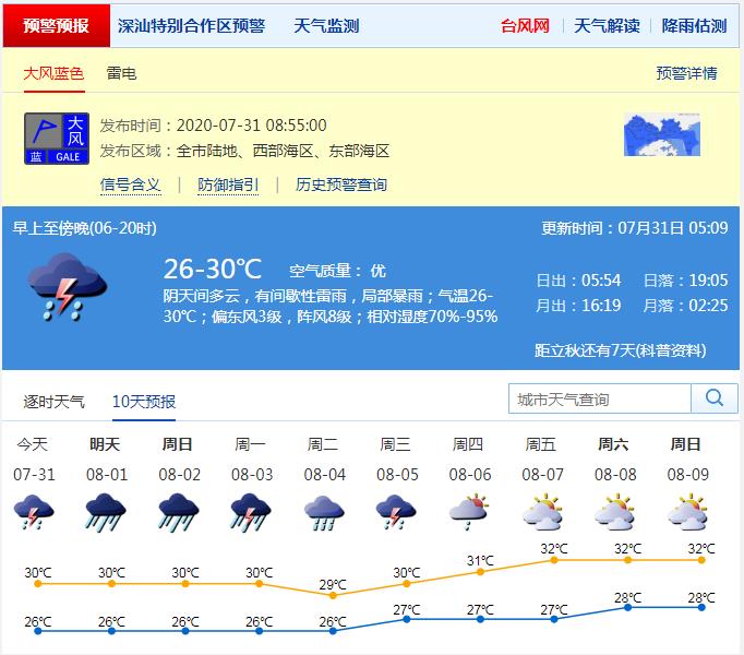 見圳客戶端·深圳新聞網(wǎng)2020年7月31日訊(記者 陳婕 施冰冰)連續(xù)一周暴雨,還有8級陣風(fēng)要來!上班族們,雨具、短褲和拖鞋快通通備起來啦!記者從市氣象局了解到,深圳31日受偏東氣流影響,有間歇性雷陣雨,雨量可達(dá)大雨,南部地區(qū)暴雨,雨時(shí)伴有8級左右短時(shí)陣風(fēng),高溫天氣緩解;1-4日受熱帶低壓和季風(fēng)共同影響,深圳有暴雨局部大暴雨,沿海、高地和海區(qū)最大陣風(fēng)8級左右;深汕有大暴雨局部特大暴雨,陣風(fēng)8-10級。